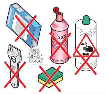 استفاده نکنید. - ابزار تیز و ساینده (بطور مثال اسفنج ساینده، خراشنده، برس فلزی و …)