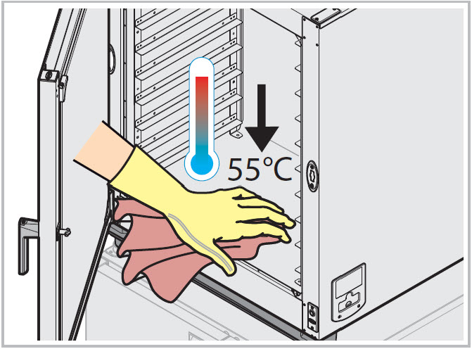 بالای 70°C | روند سردسازی محفظه فر بطور خودکار آغاز می شود (پیغام “INF” روی نمایشگر ظاهر می شود). مدت زمان آن بسته به دمای فر متفاوت خواهد بود. پس از آن برنامه شستوشوی انتخاب شده آغاز می شود و طبق زمانبندی بطول می انجامد. |
