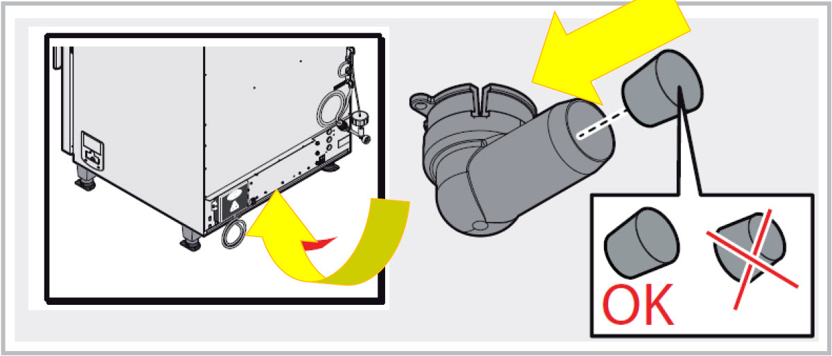 اگر دستگاه به سیستم تخلیه دائمی متصل نشده باشد، پلاستیک مخروطی که لوله